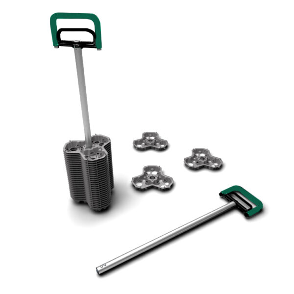 Speedies® Släppkäpp används på små och stora ytor. Käppen förs ner i en stapel Speedies®, handtaget vrids och med ett tryck lägger man ut en distans i taget. Med släppkäppen behöver du inte krypa, kröka rygg eller stå på tå i armeringen. Snabbt går det också. Gå, klicka och distansutläggningen är klar!